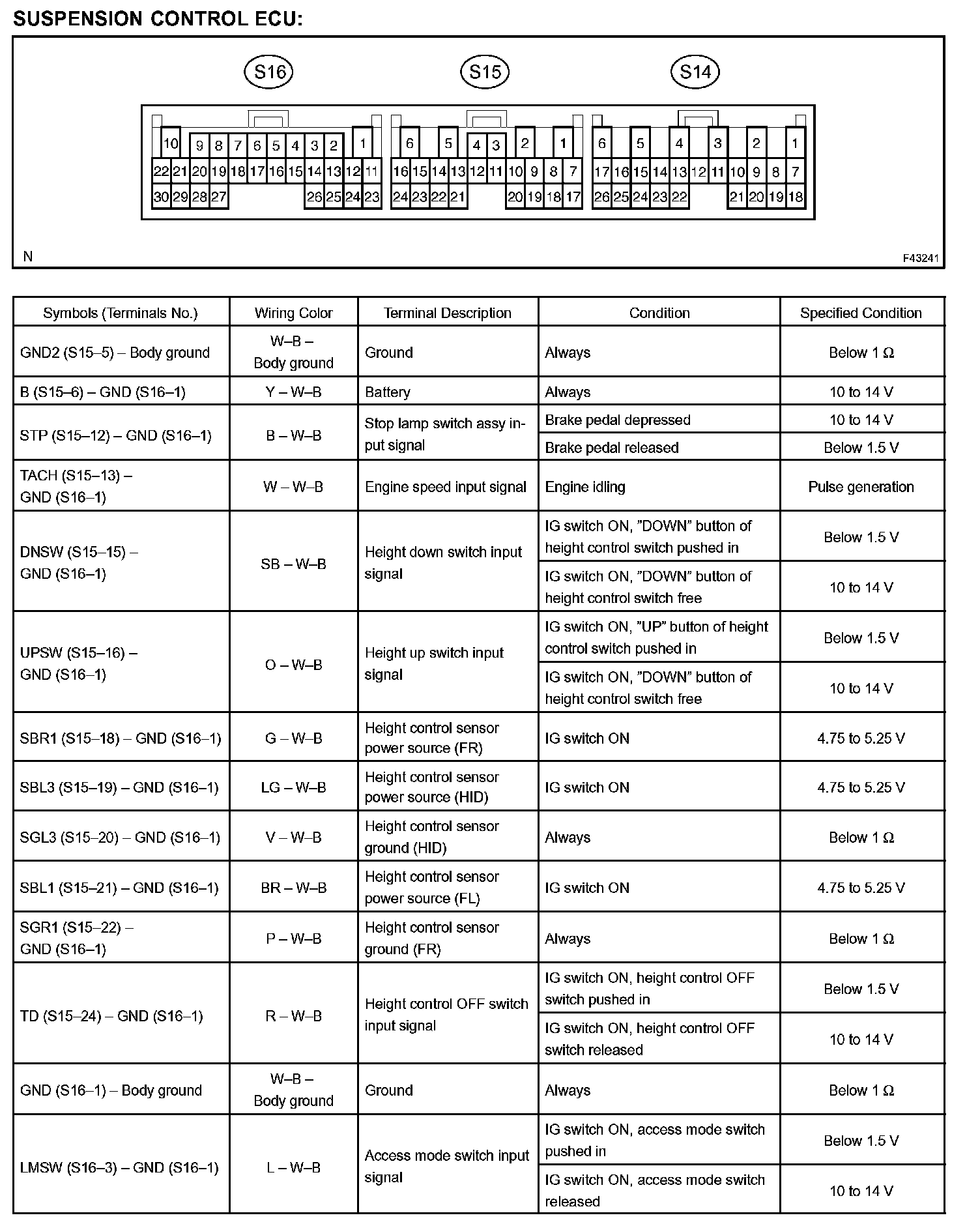 Terminals Of ECU/Pinouts - Suspension Control ECU Part 4:
