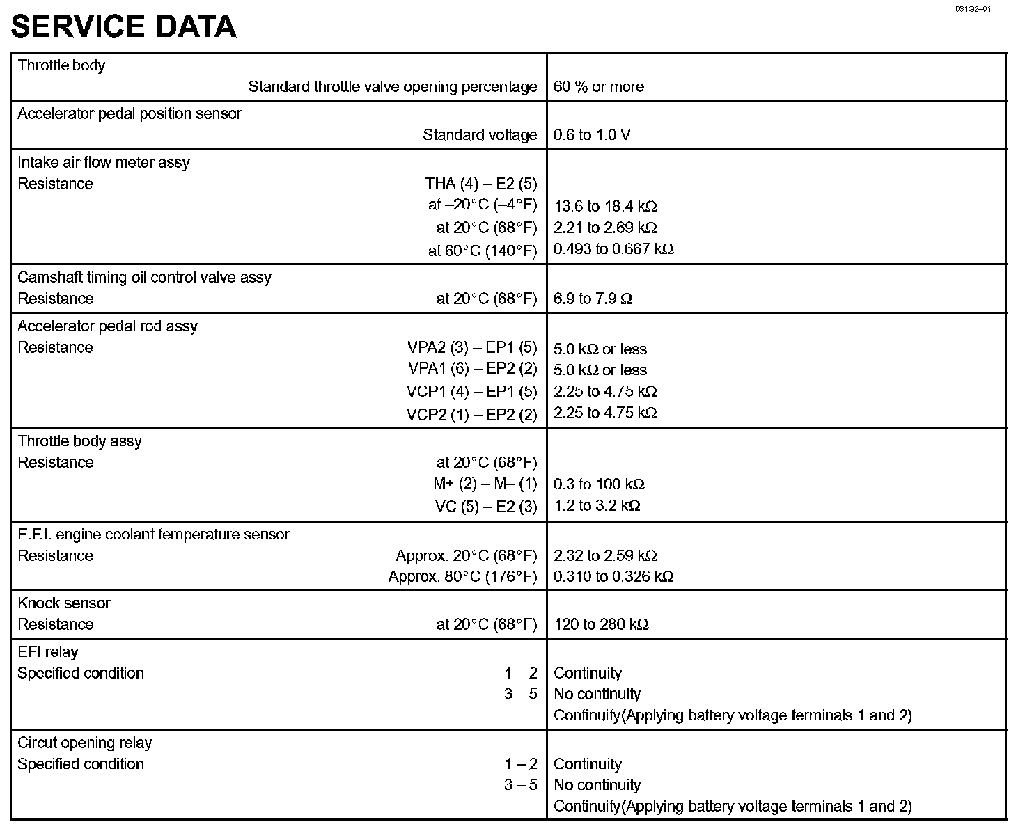 Engine Control System - Service Data:
