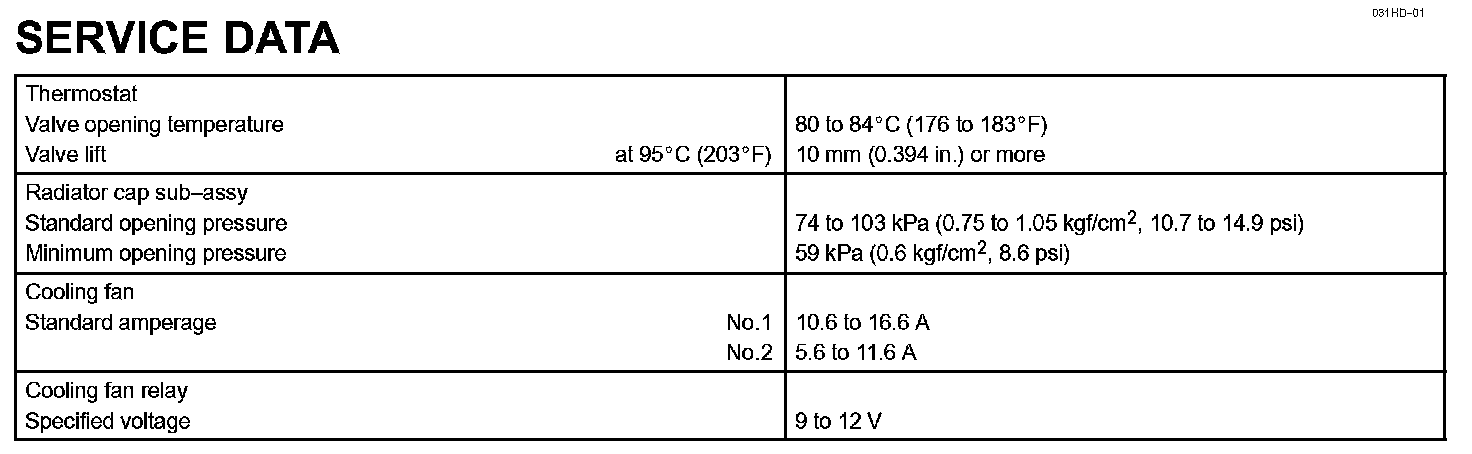 Cooling - Service Data: