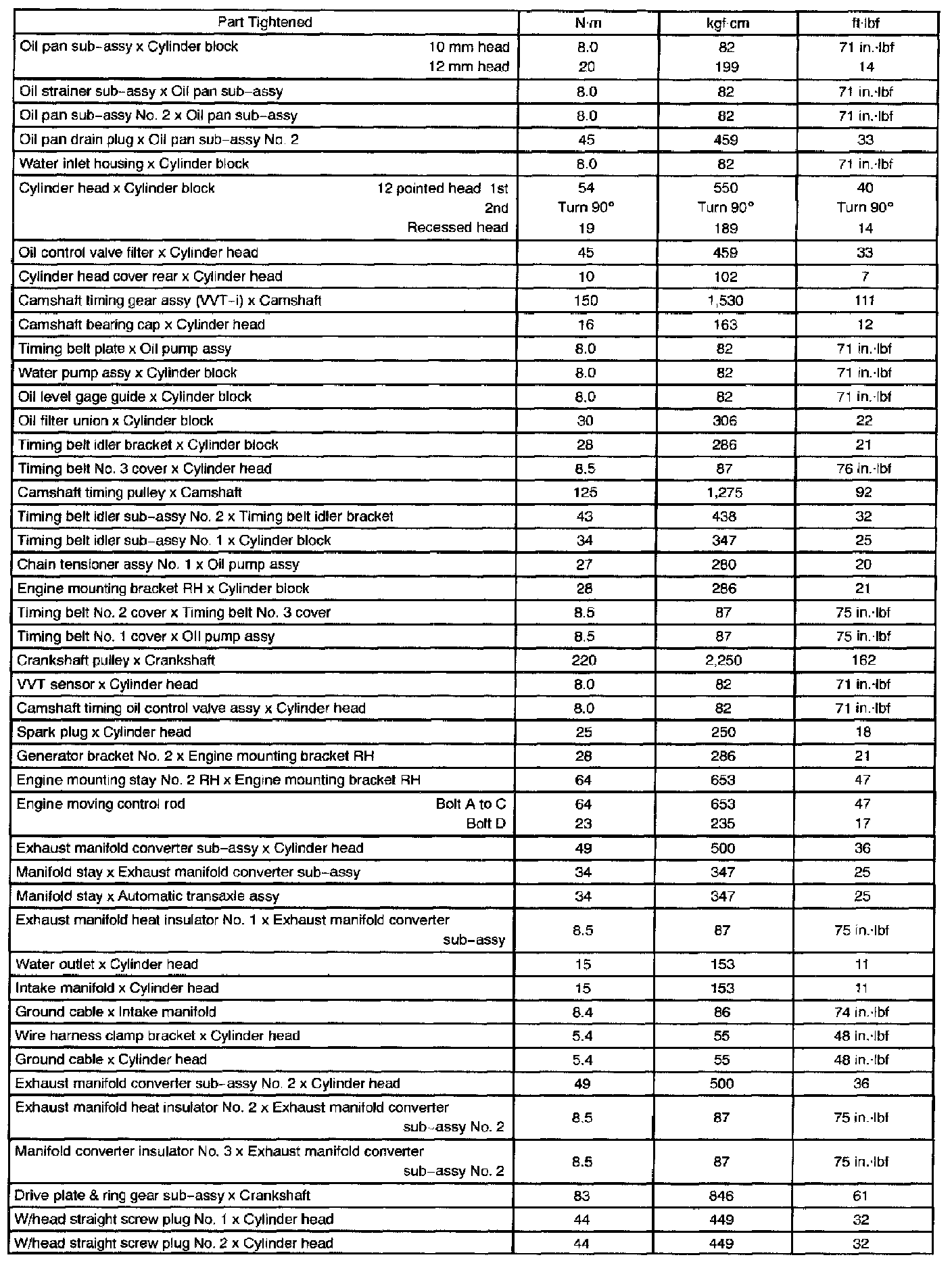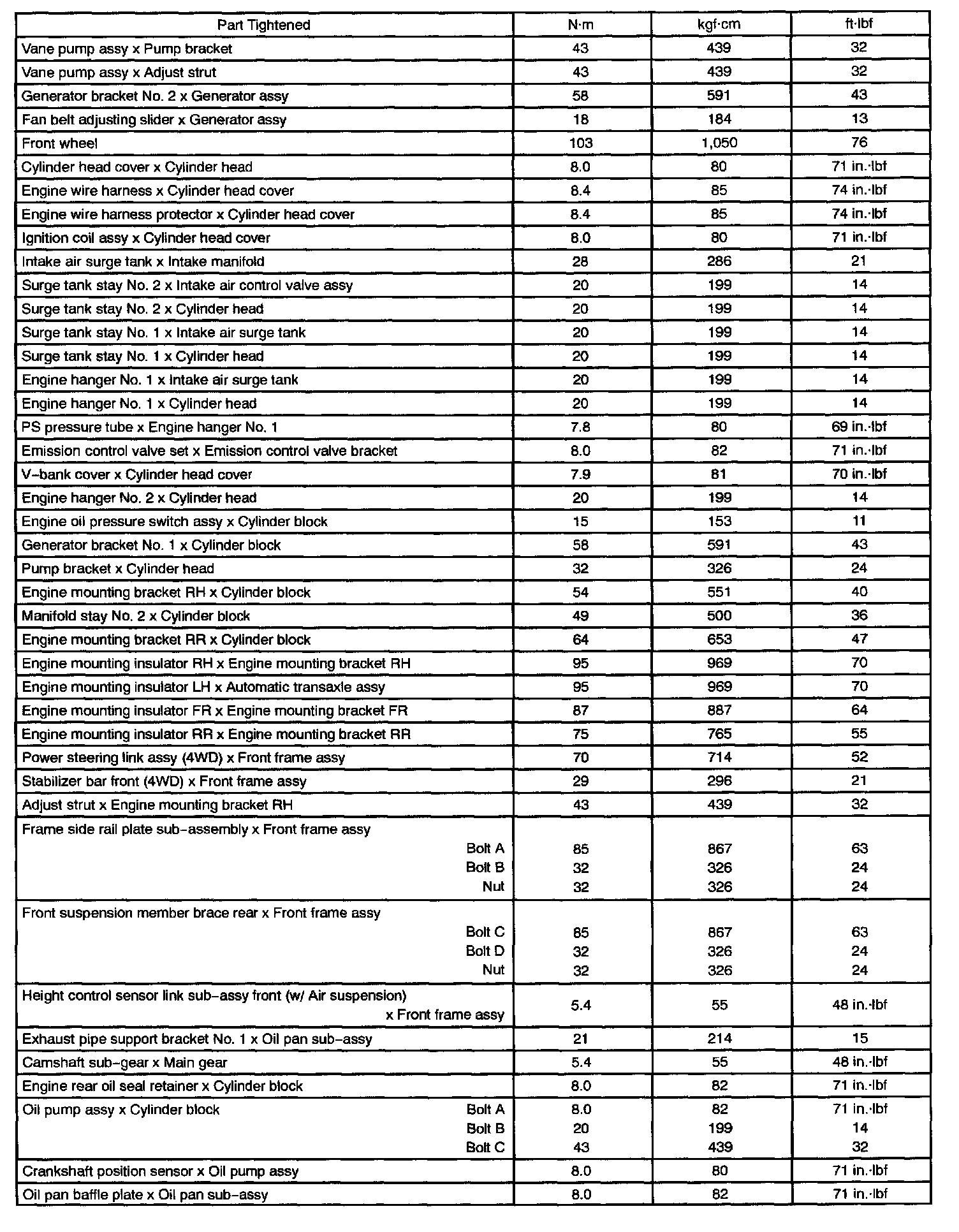 Torque Specifications