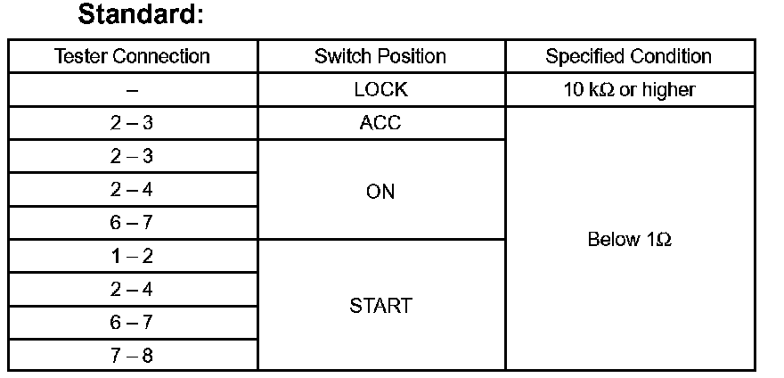 INSPECT IGNITION OR STARTER SWITCH ASSY