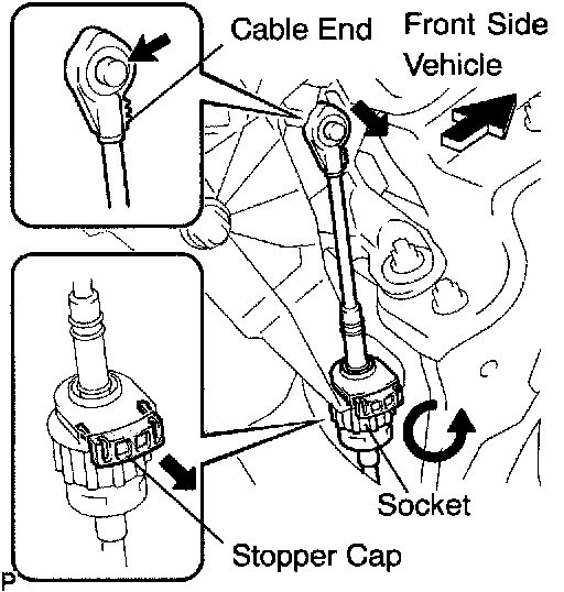 d. Turn the socket of the transmission control cable assy clockwise and install the stopper cap.
