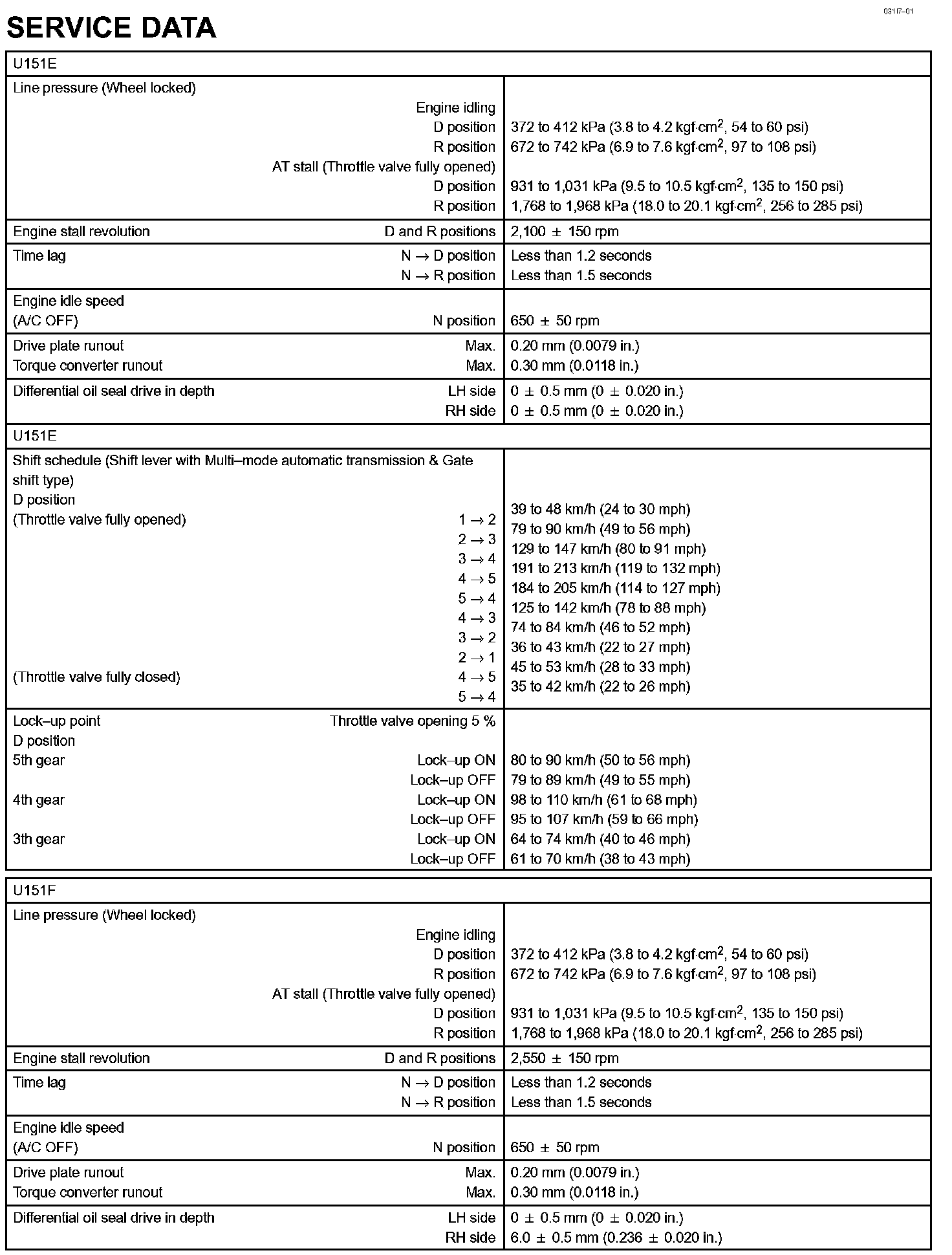 Automatic Transmission / Transaxle - Service Data Part 1: