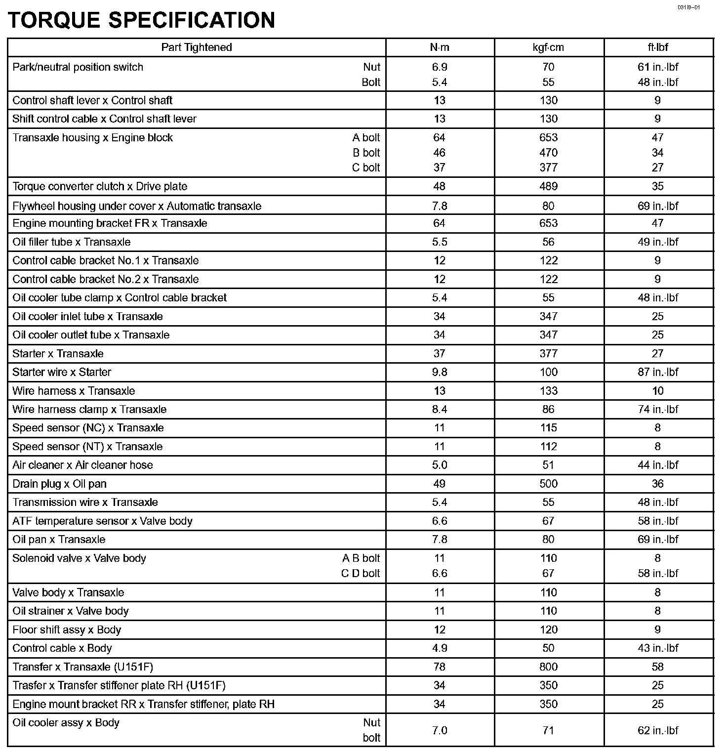 Automatic Transmission / Transaxle - Torque Specification: