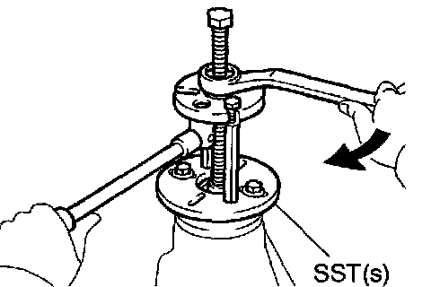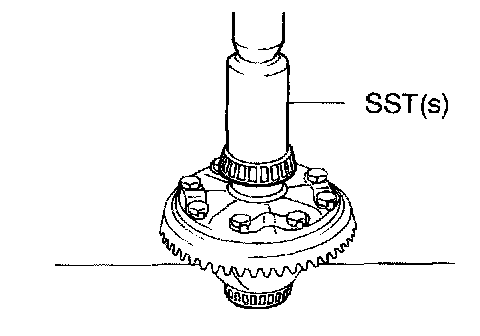 a. Using SST(s) and a press, install the case bearing (LH) to the differential case.