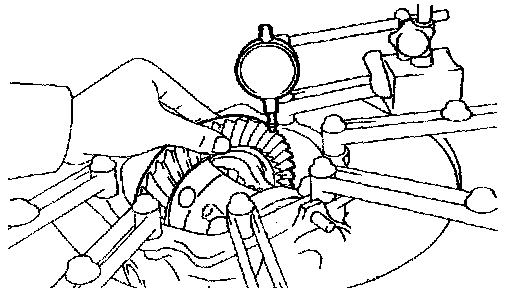 c. Using a dial gauge, measure the runout of the ring gear.
