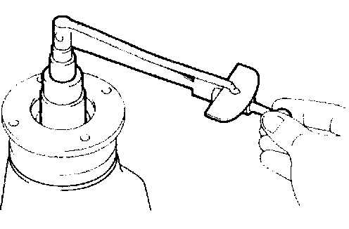 ^ If the torque exceeds the maximum while retightening the nut, replace the bearing spacer and repeat the preload adjusting procedure.
