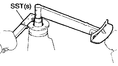 c. Using SST(s) to hold the flange, torque the nut.