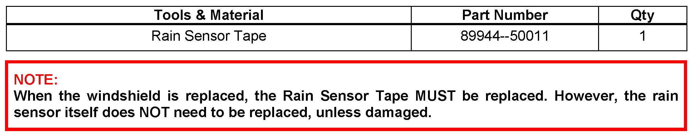 If there are bubbles or contaminants visible in the Rain Sensor Tape, please remove and replace the Rain Sensor Tape (P/N: 89944-50011) as described in the the Rain Sensor Tape Replacement section in this bulletin.