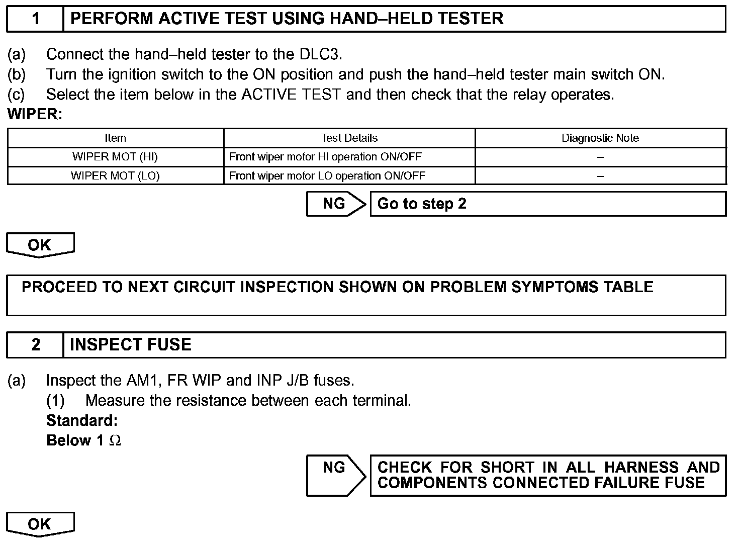 HINT: Start the inspection from step 1 when using the hand-held tester, and start from step 2 when not using the hand-held tester.