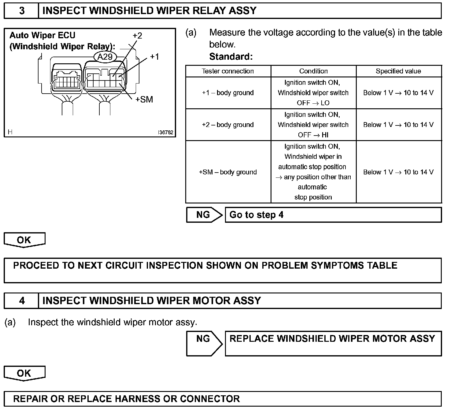 Even if the windshield wiper relay assy is in failure, its circuit structure enables operation of the front wiper.