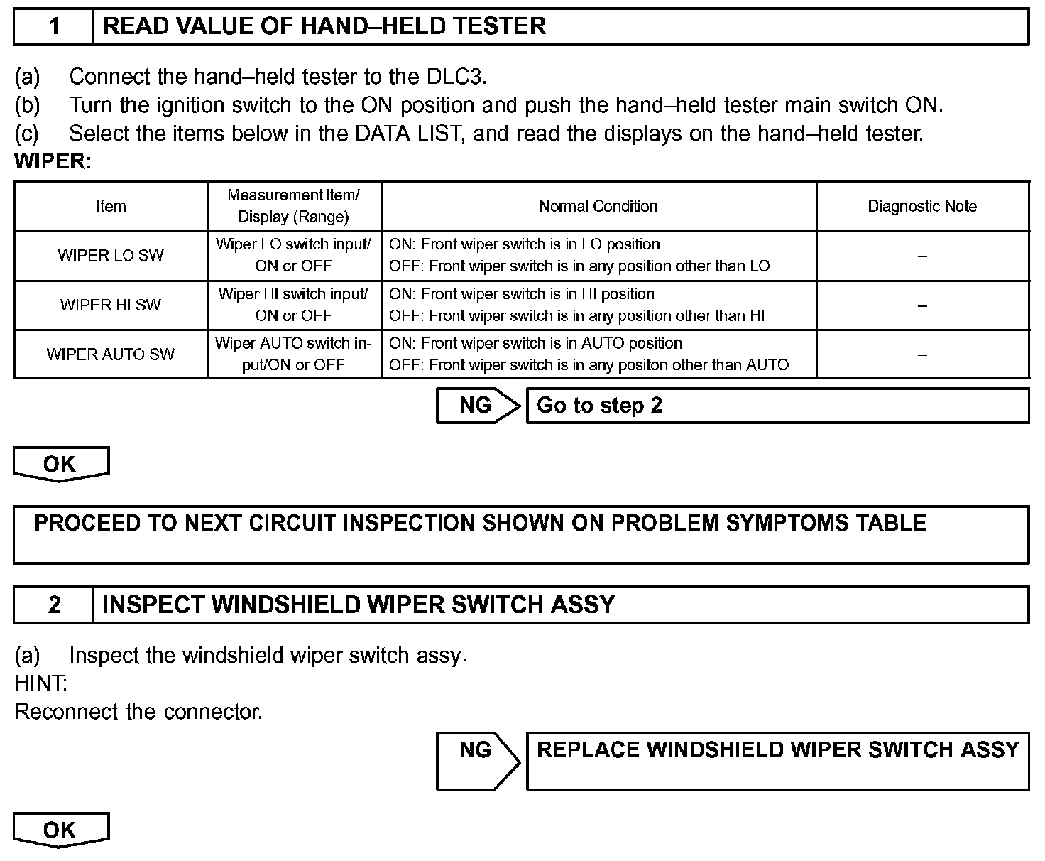 HINT: Start the inspection from step 1 when using the hand-held tester, and start from step 2 when not using the hand-held tester.