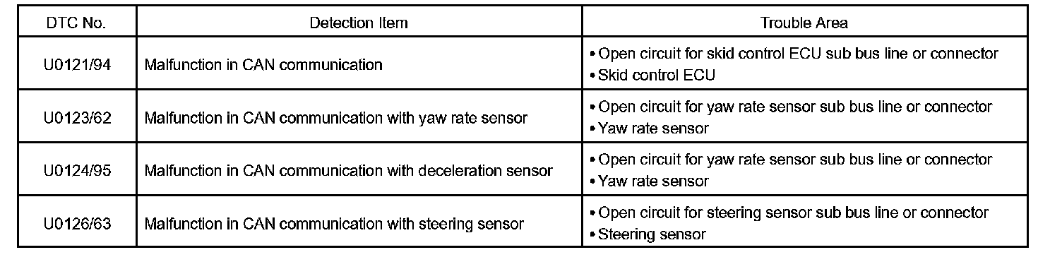 Check the trouble areas following the DTC COMBINATION TABLE.