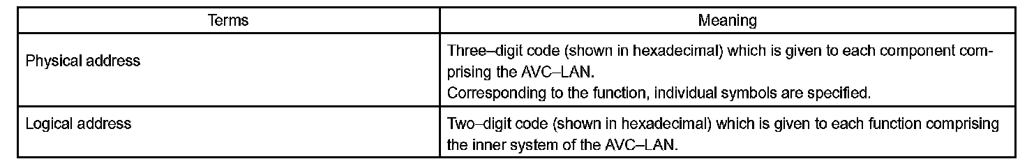 - If "1F6" or "16C" is output as a physical address, refer to "AVC-LAN CIRCUIT (MULTI-DISPLAY CONTROLLER SUB-ASSY - RADIO RECEIVER ASSY)".
