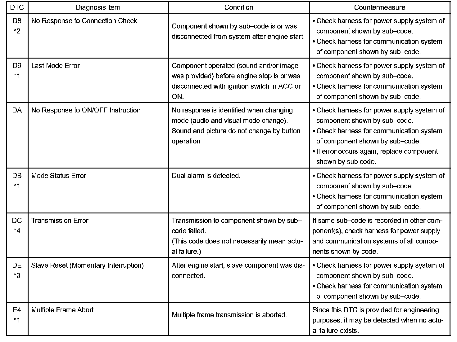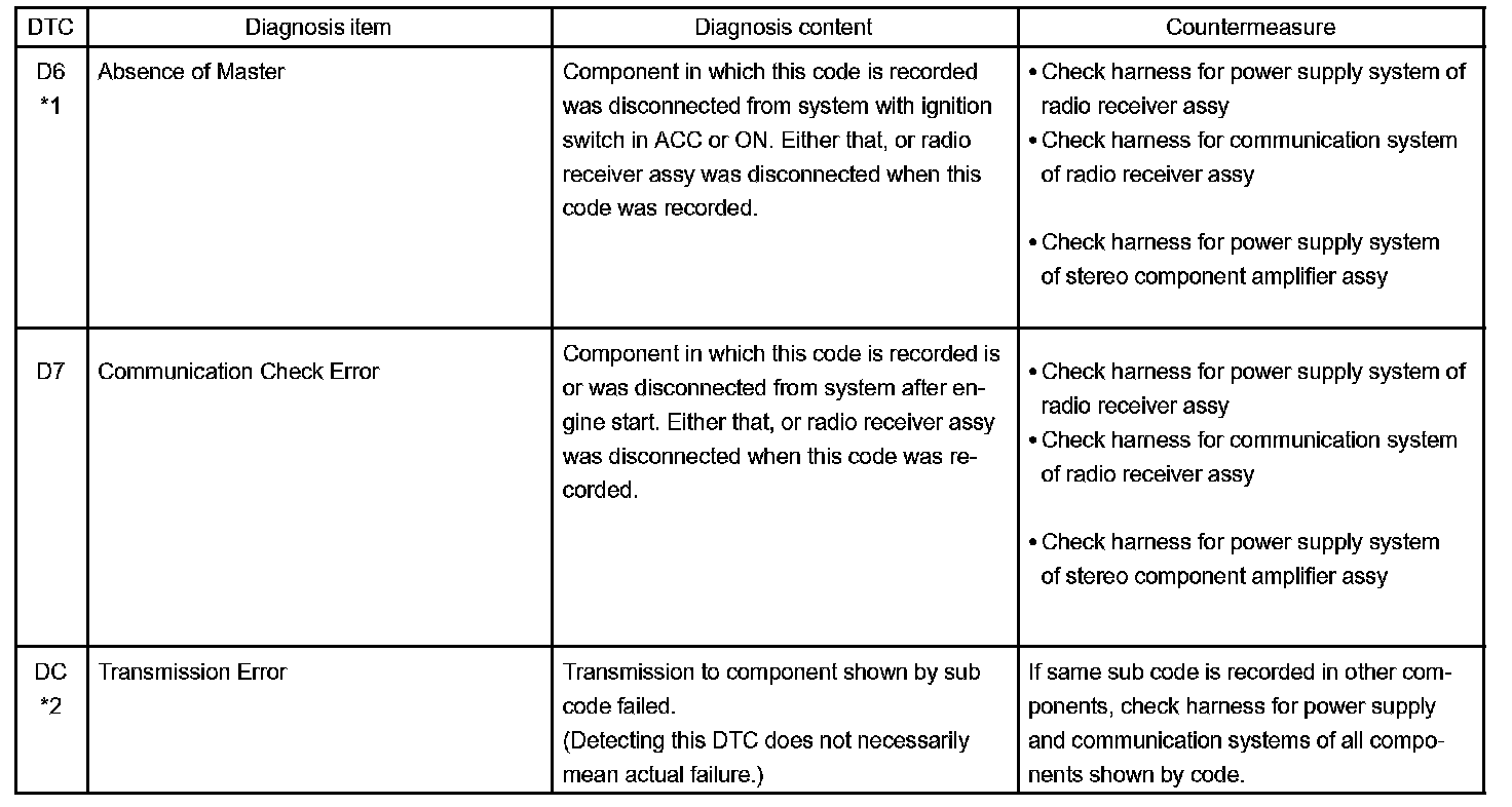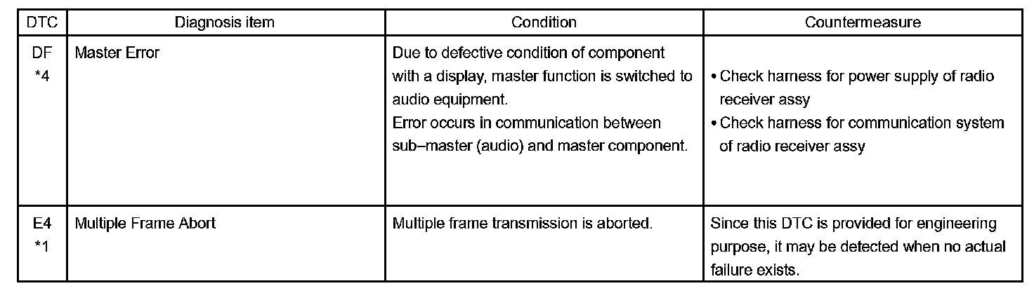 - *4: The code is stored 210 seconds after the master component power supply is disconnected with the ignition switch in the ACC or ON position.