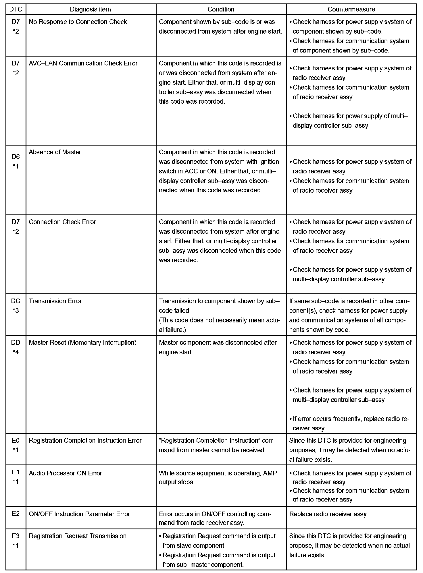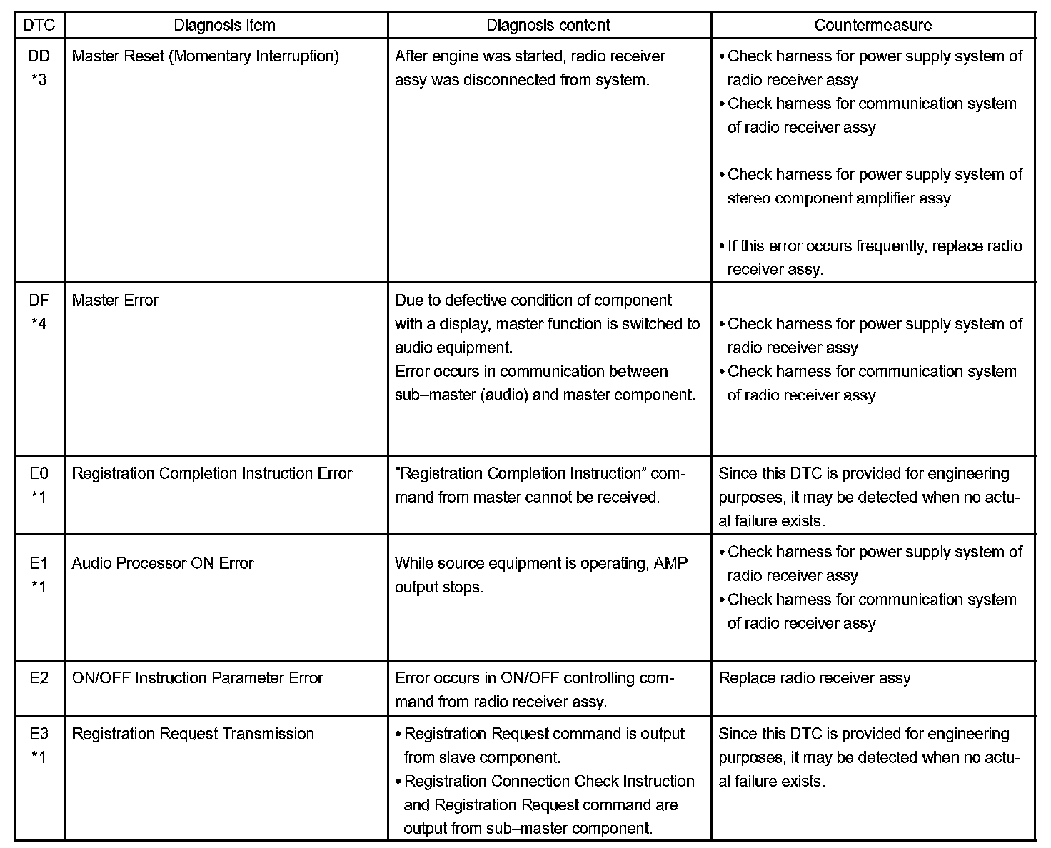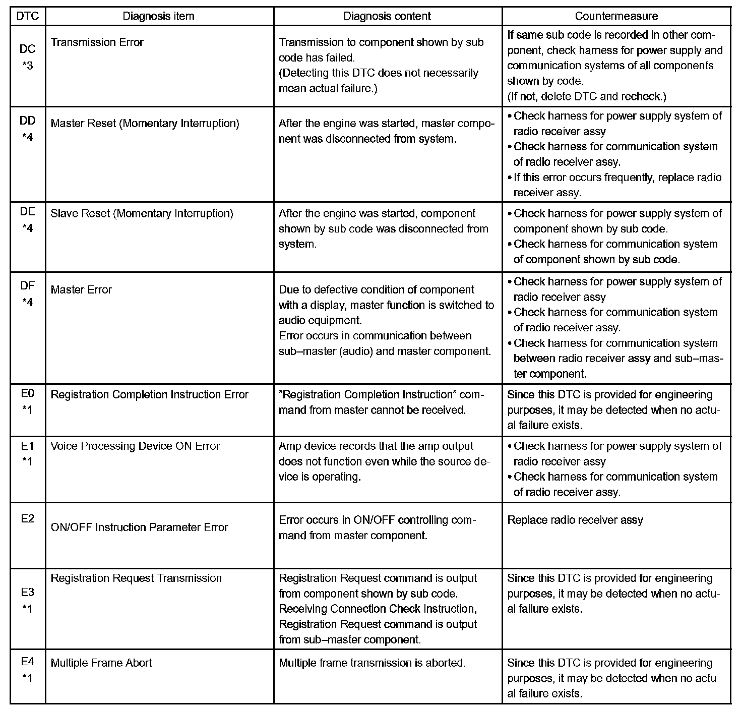 - *4: The code is stored 210 seconds after the master component power supply is disconnected with the ignition switch in the ACC or ON position.