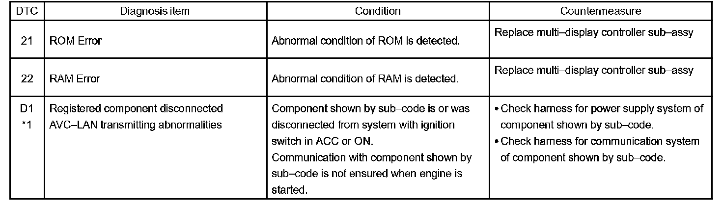 - *1: Even if no failure is detected, this code may be stored depending on the battery condition or voltage for starting the engine.