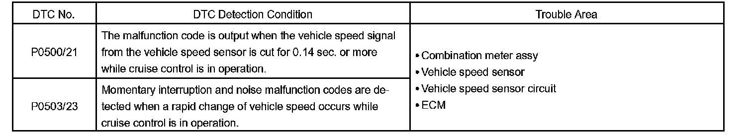 DTC P0500 VEHICLE SPEED SENSOR "A"CIRCUIT DESCRIPTION