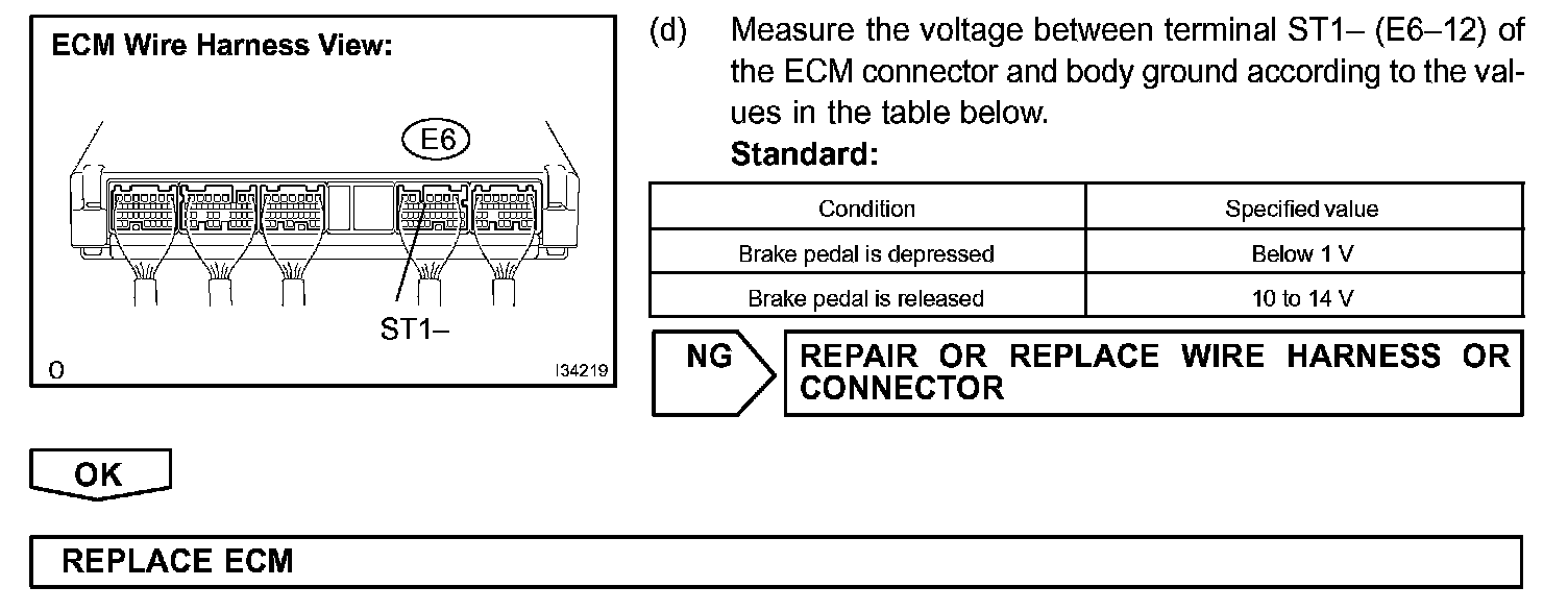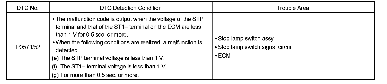 When the brake pedal is on, positive battery voltage is normally applied through the STOP fuse and the stop lamp switch assembly to terminal STP of the ECM, and then the ECM turns the cruise control OFF.