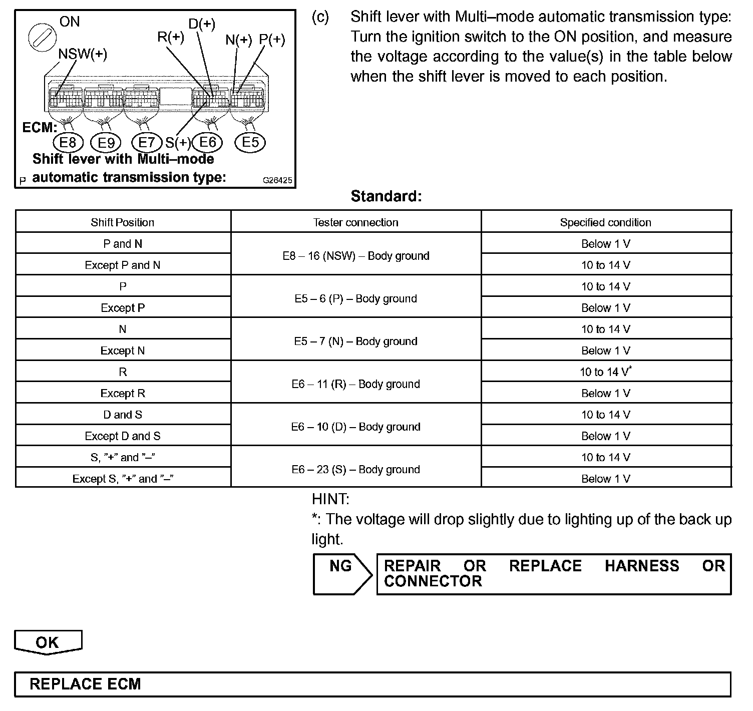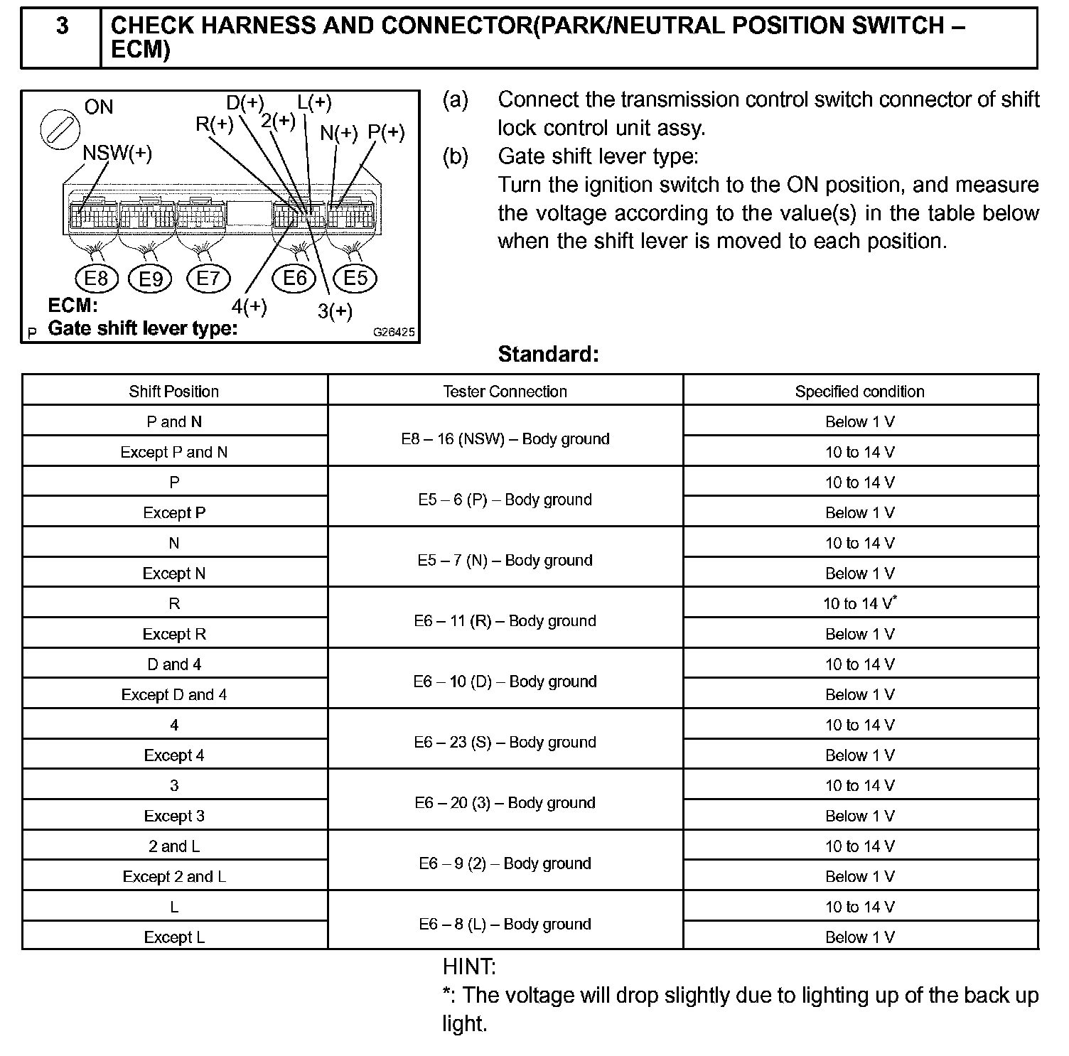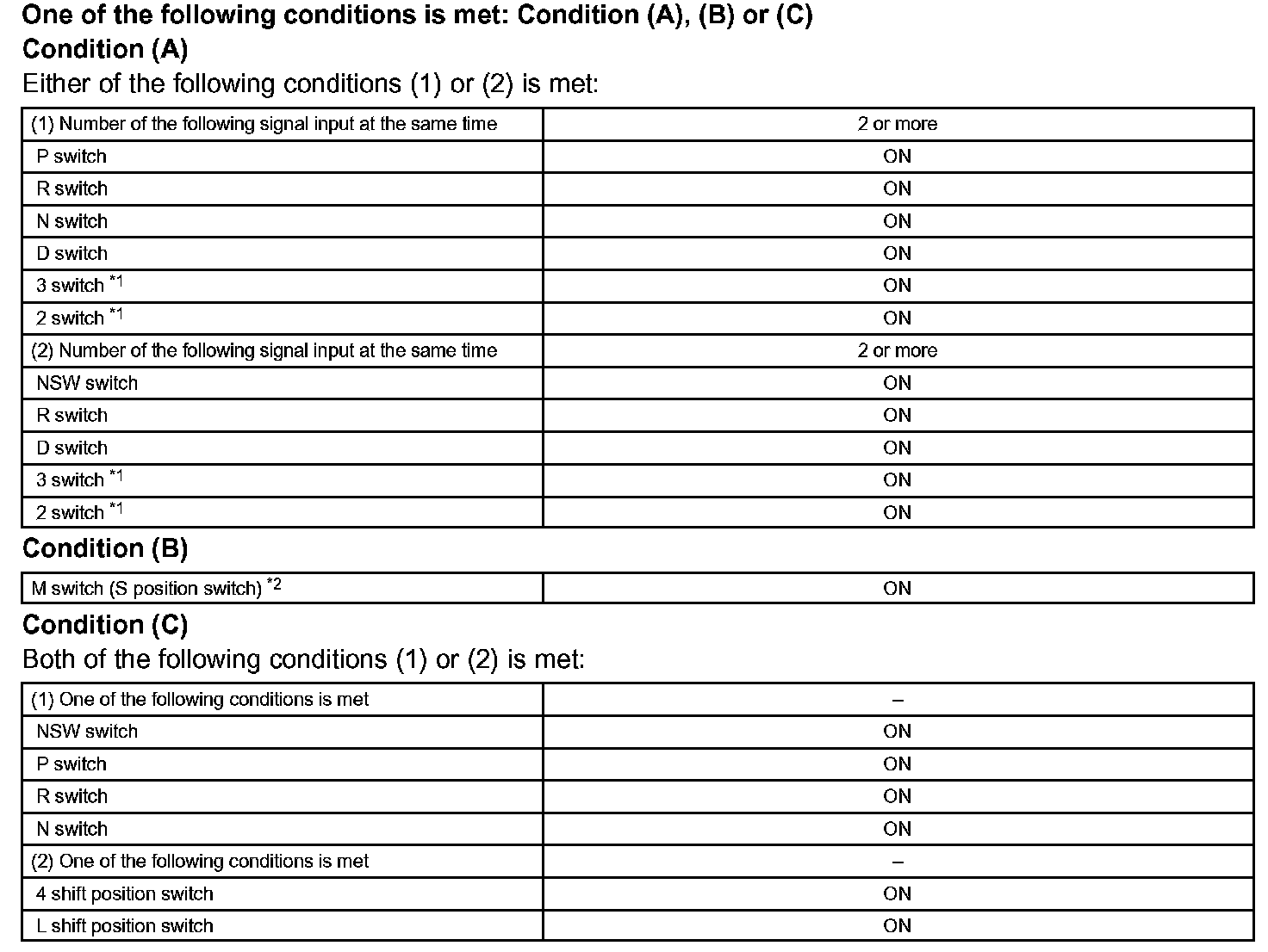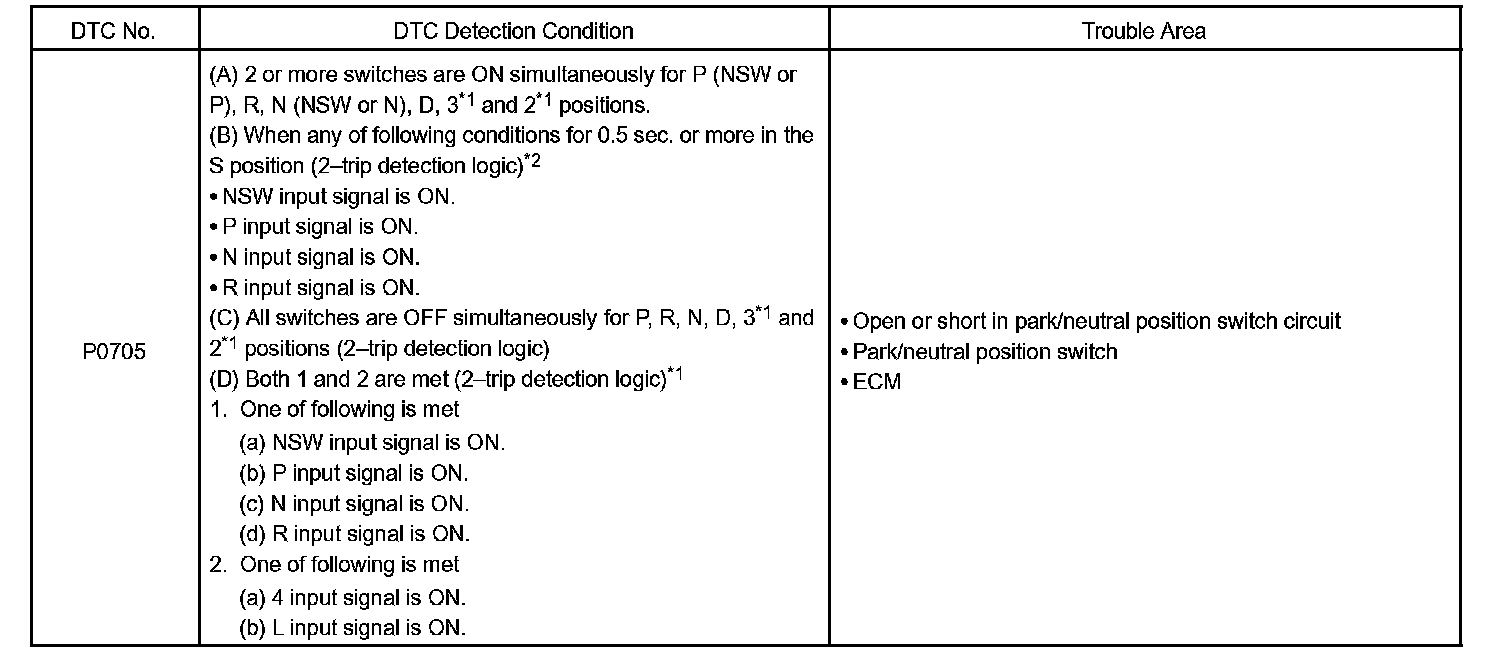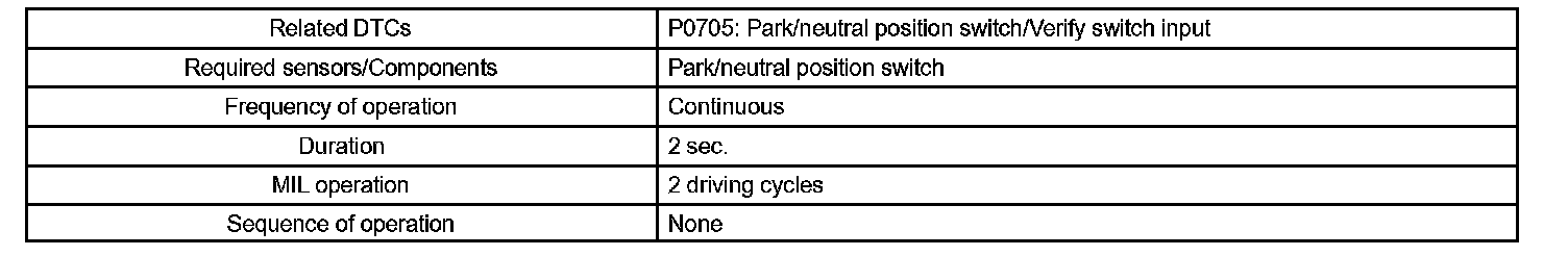 When the park/neutral position switch sends more than one signal at a time from switch positions P, R, N, D, 3*1 or 2*1, the ECM interprets this as a fault in the switch. The ECM will turn on the MIL.