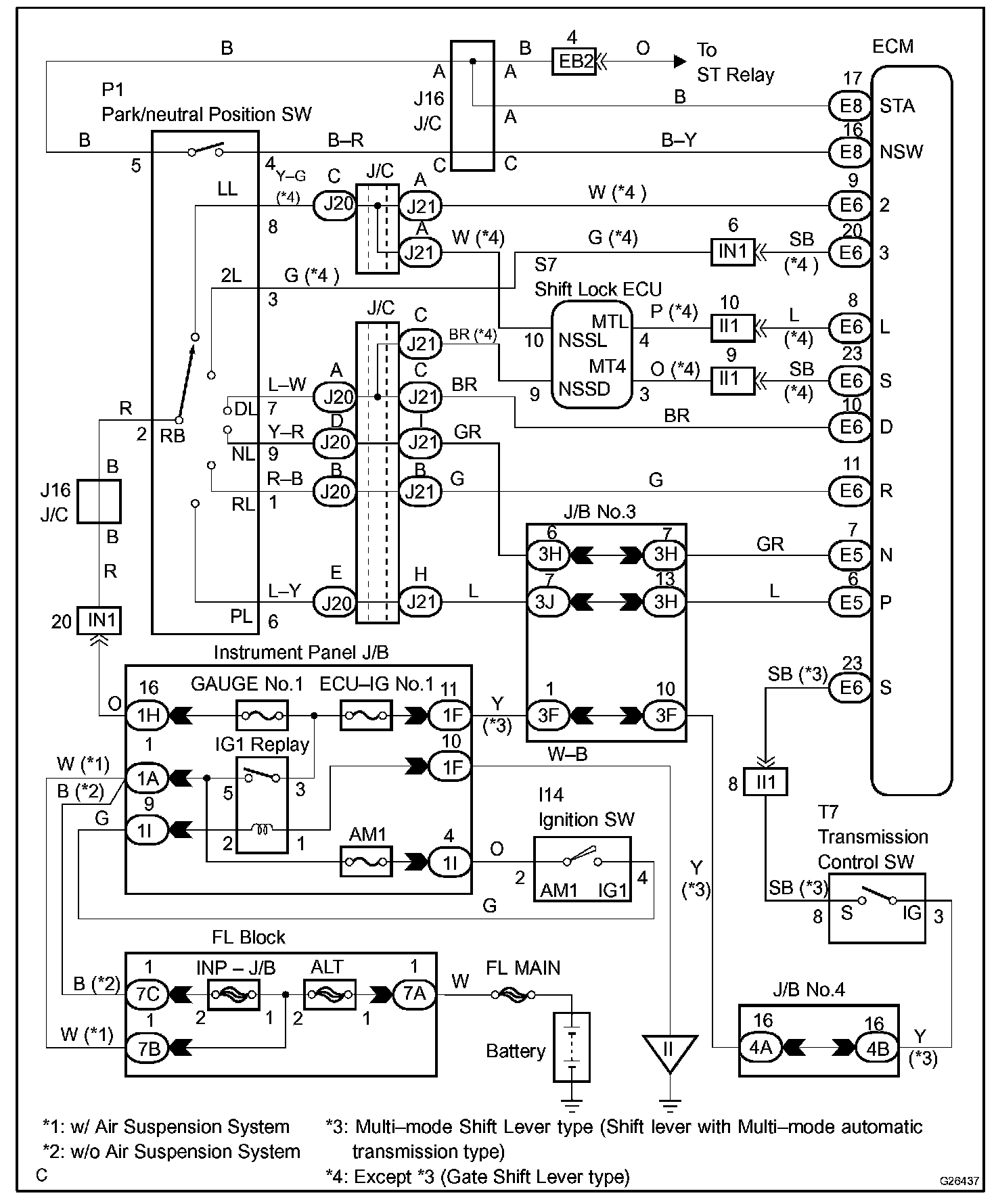 *2: Shift lever with Multi-mode automatic transmission type