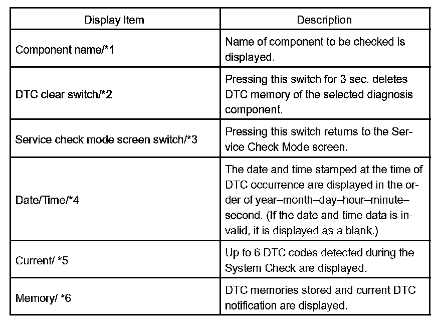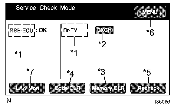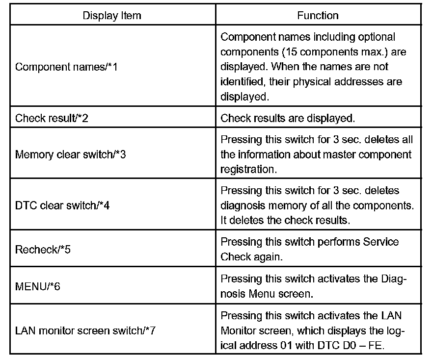 HINT: Service Check displays the check results based on the information obtained from each component's response to "System Check Execution" and "Diagnosis Memory Request", and the information of "Current DTC Notification" (the "Unit Check" that will be displayed on the next screens.).