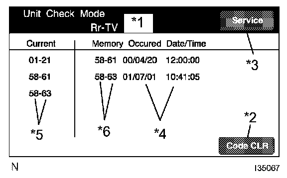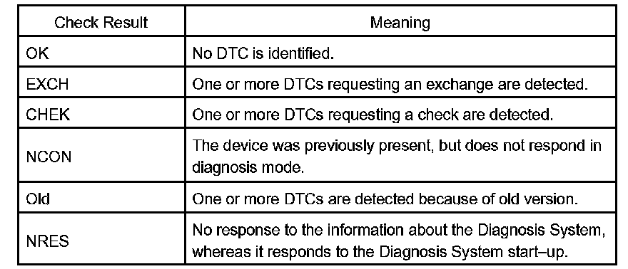 - In the "Unit Check Mode", DTCs which are identified as "EXCH" in the "Service Check" are classified into "Current" DTCs and "Past" DTCs.