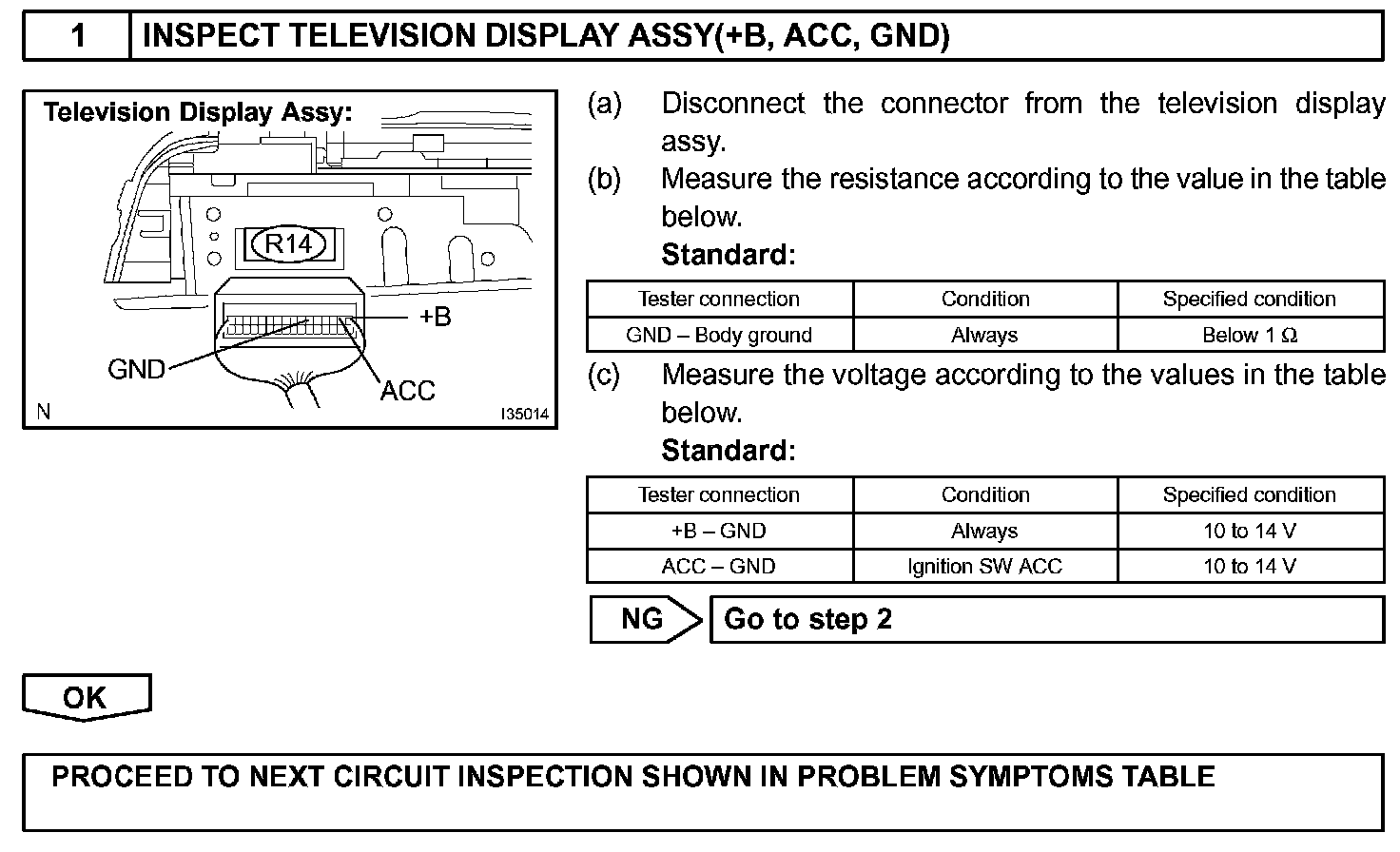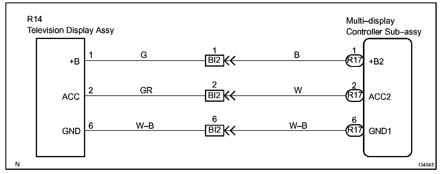 This is the power source circuit to operate the television display assy. The power source is sent from the battery to the television display assy through the multi-display controller sub-assy.
