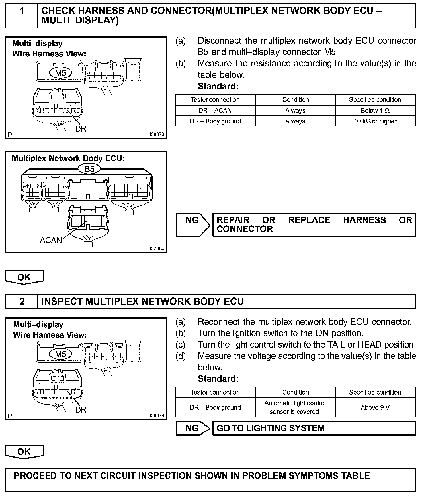 The multi-display dims the display and panel switches by receiving a TAIL cancel signal from the body ECU.
