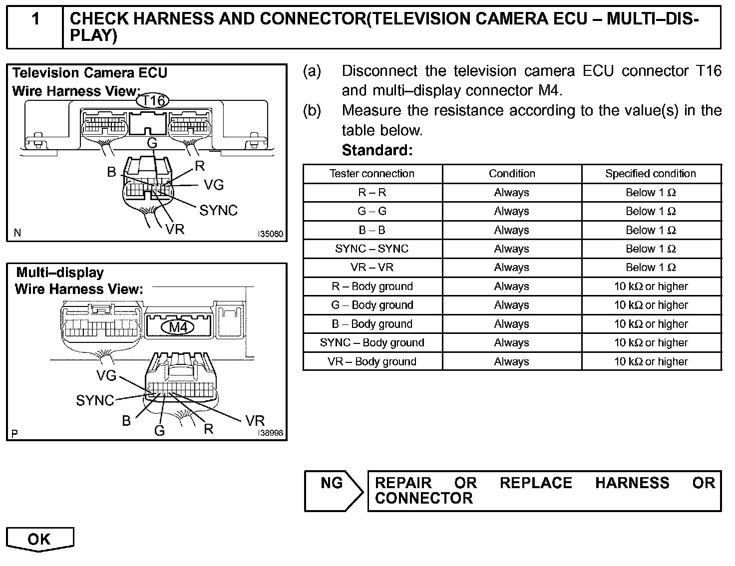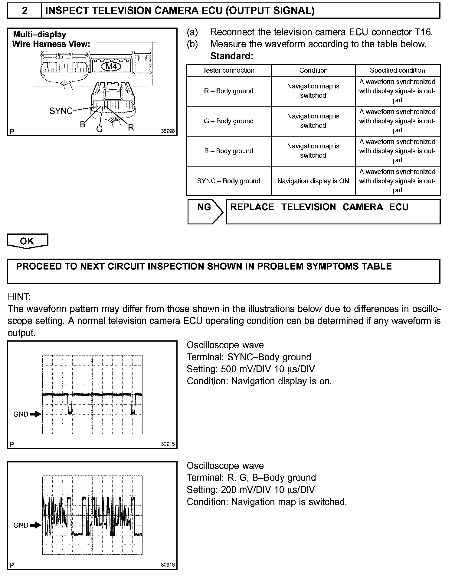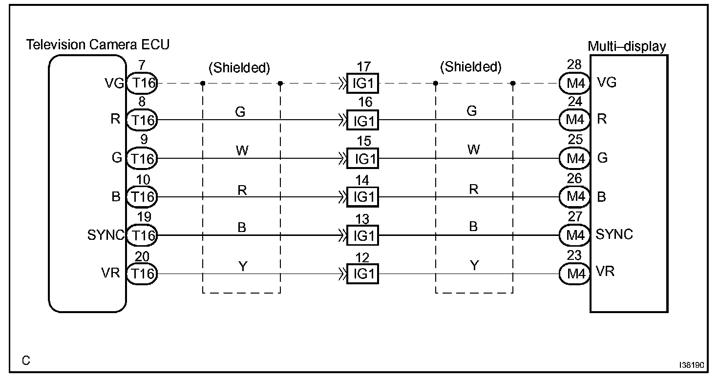 This is the display signal circuit from the television camera ECU to the multi-display.