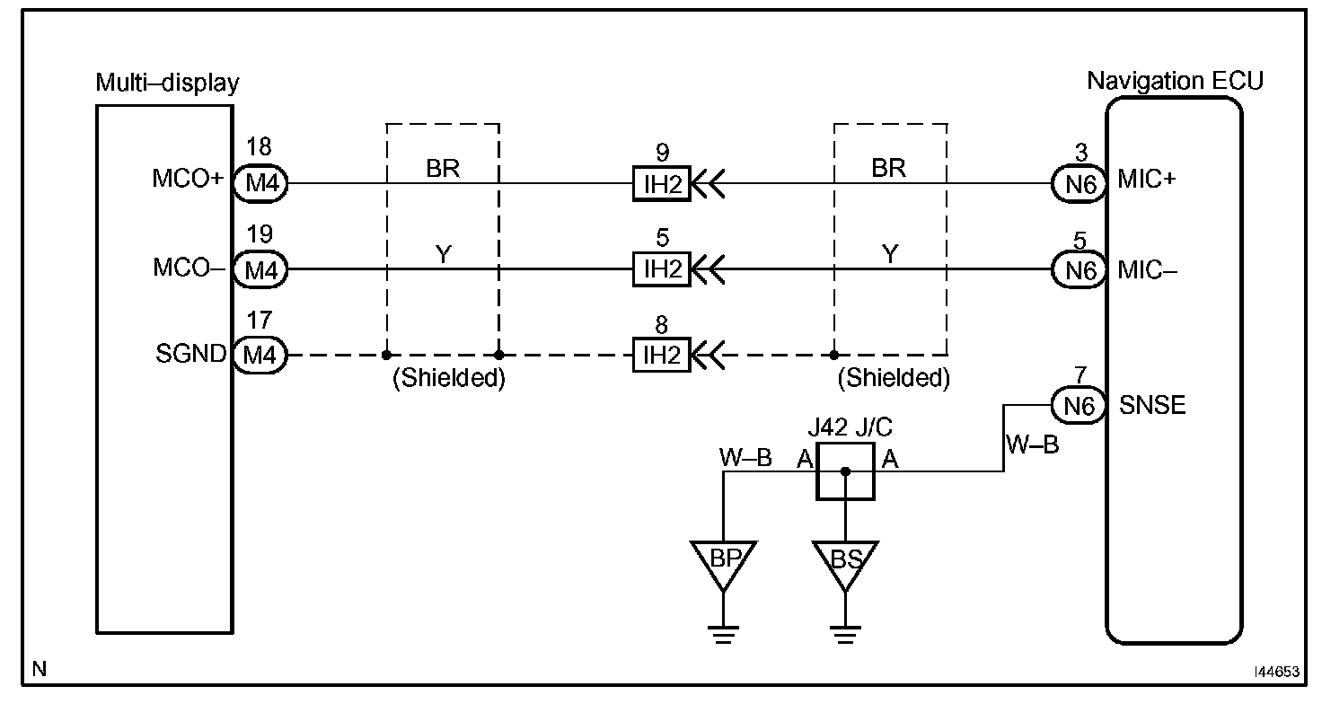 This circuit sends a microphone signal from the multi-display to the navigation ECU.