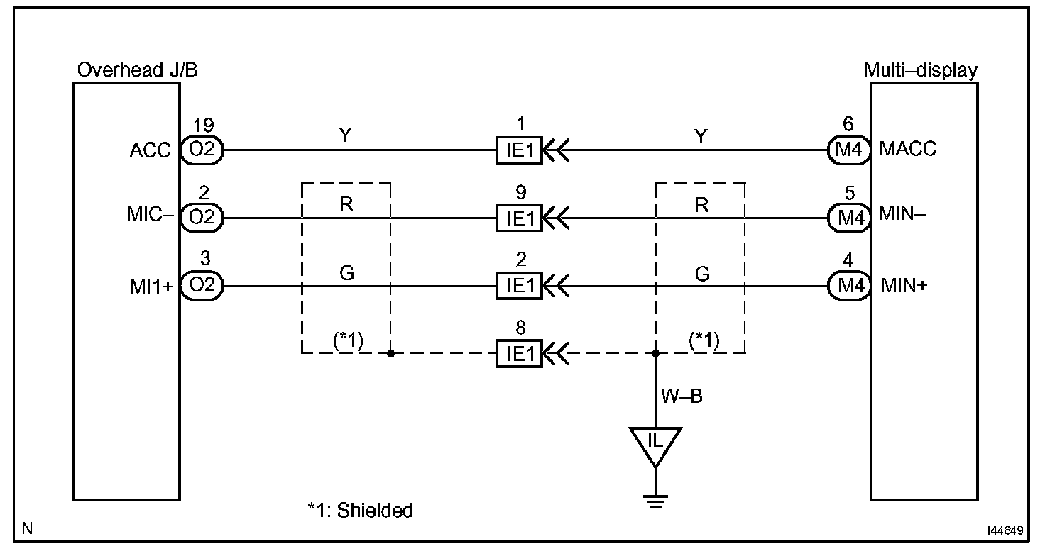 This circuit sends a microphone signal from the overhead J/B to the multi-display. It also supplies power from the multi-display to the overhead J/B.
