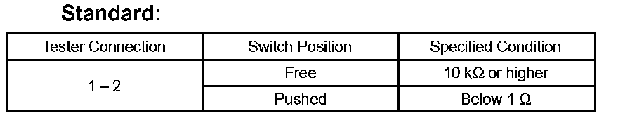 If the result is not as specified, replace the switch assembly or bulb.