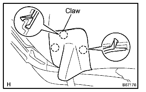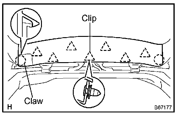 a. Using a screwdriver, disengage the 2 claws and 7 clips, and remove the trim upper.