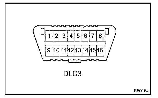 Inspect the DLC3HINT: The vehicle's ECM uses ISO 9141-2 for communication. The terminal arrangement of the DLC3 complies with SAE J1962 and matches the ISO 9141-2 format.