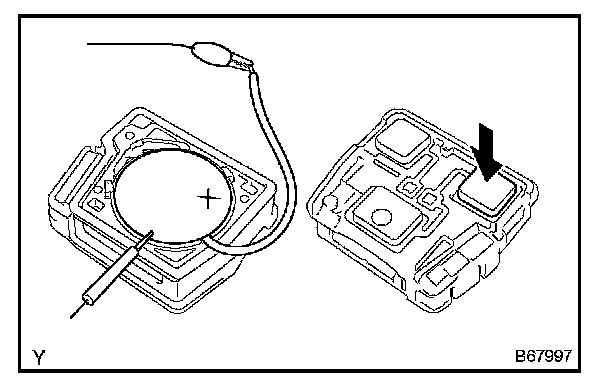 HINT: When a new or normal battery is not available, connect 2 new 1.5 V batteries in a series, connect the battery positive (+) to the battery receptacle side terminal and battery negative (-) to the bottom terminal, then apply 3 V of voltage to the transmitter.