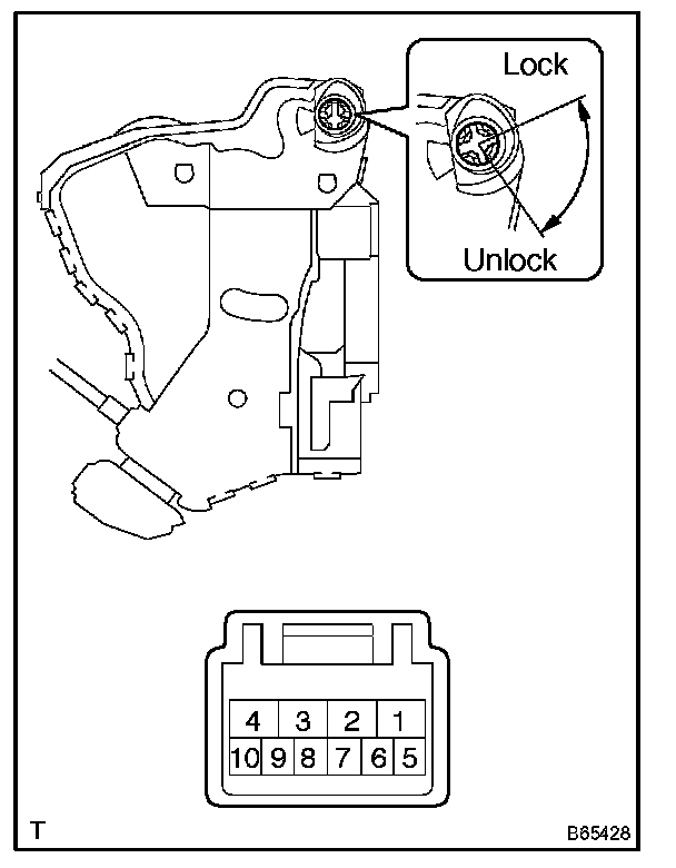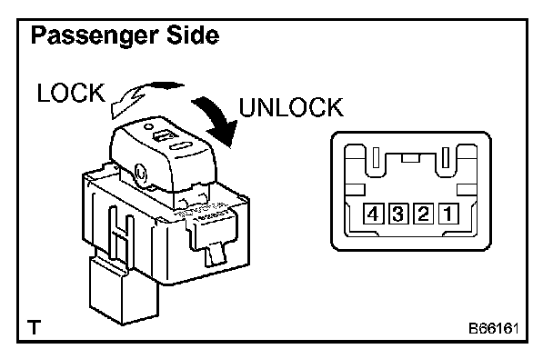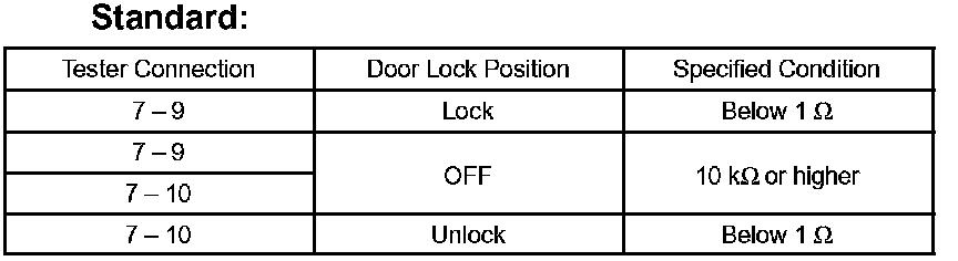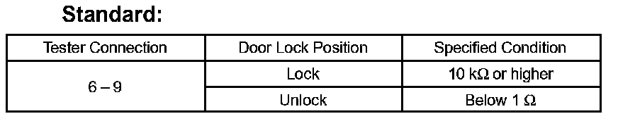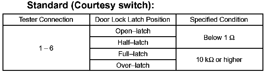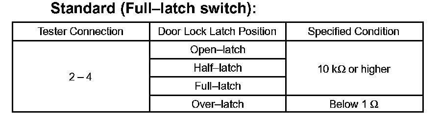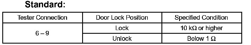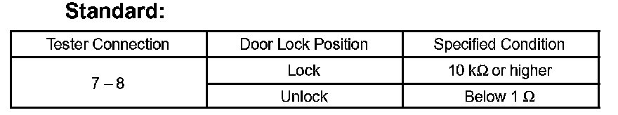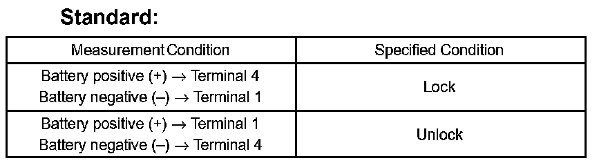 If the result is not as specified, replace the door lock assembly.