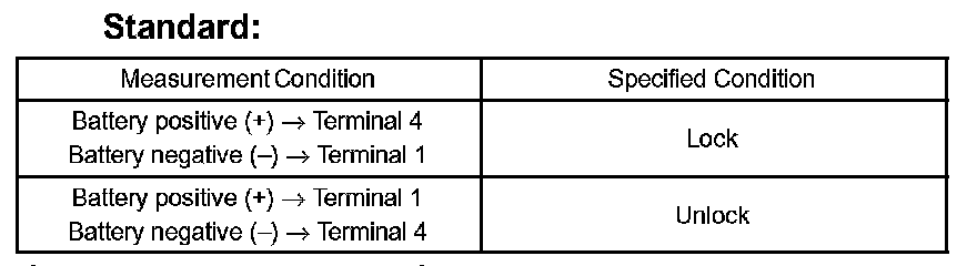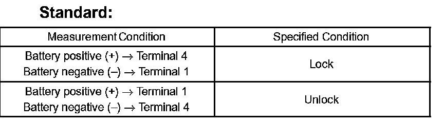 3. Apply battery voltage to the door lock motor and check operation of the motor.