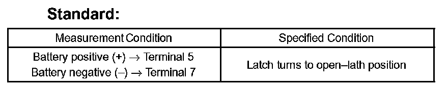 2. Apply battery voltage to the door lock and check operation of the latch.