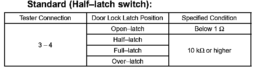 d. Check the resistance of the back door half-latch switch.