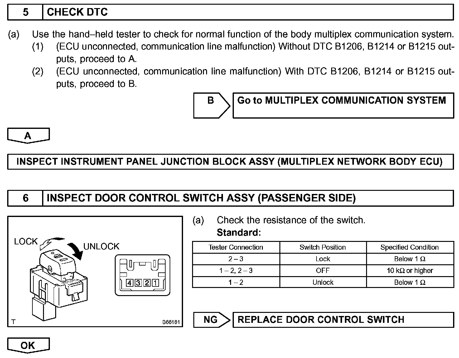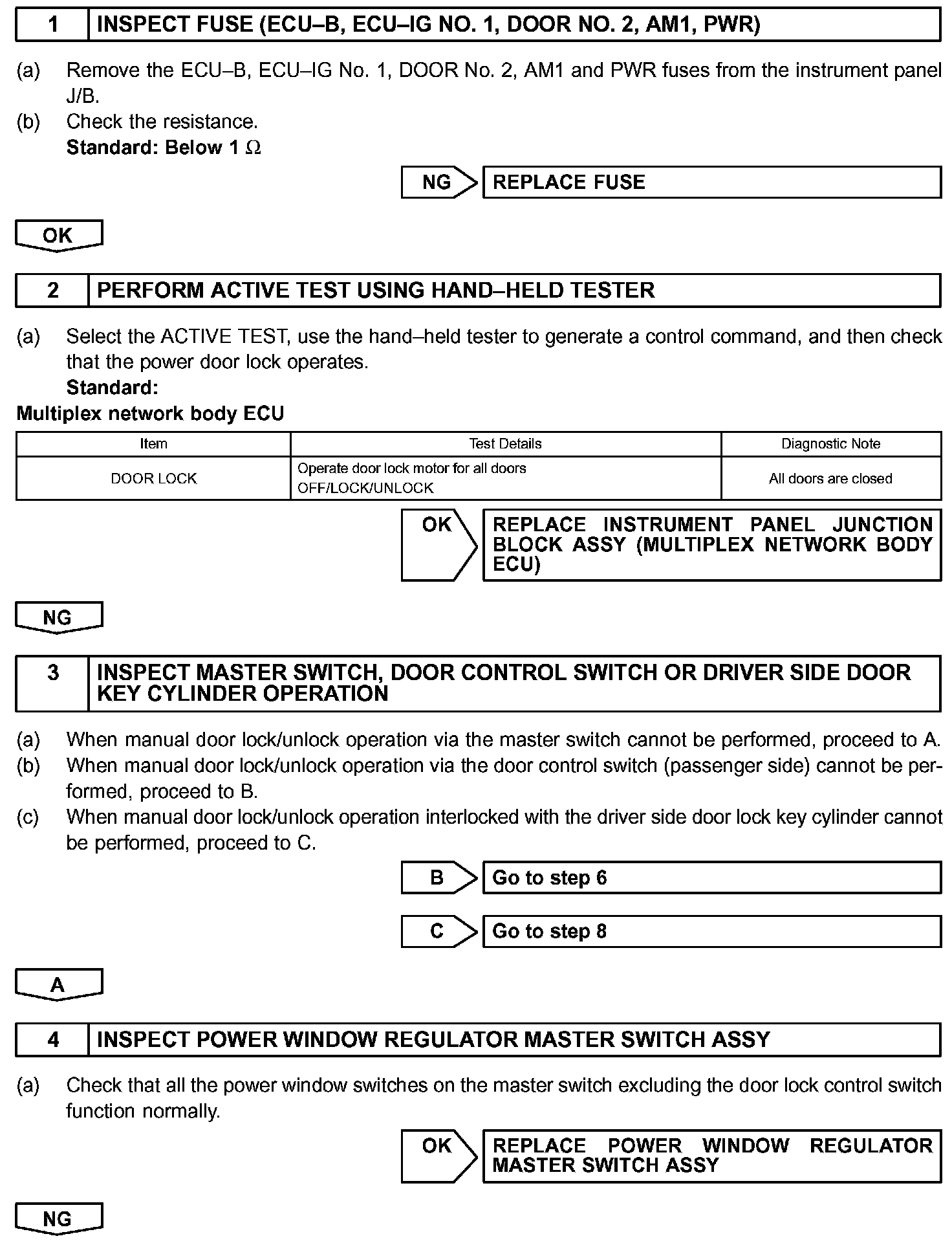 The body ECU drives the door lock motor after receiving a switch signal from the master switch, the door control switch and the driver door key cylinder.