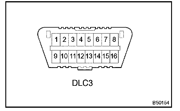 Inspect the DLC3The vehicle's ECM uses ISO 9141-2 communication protocol. The terminal arrangement of the DLC3 complies with the SAE J1962 and matches the ISO 9141-2 format.