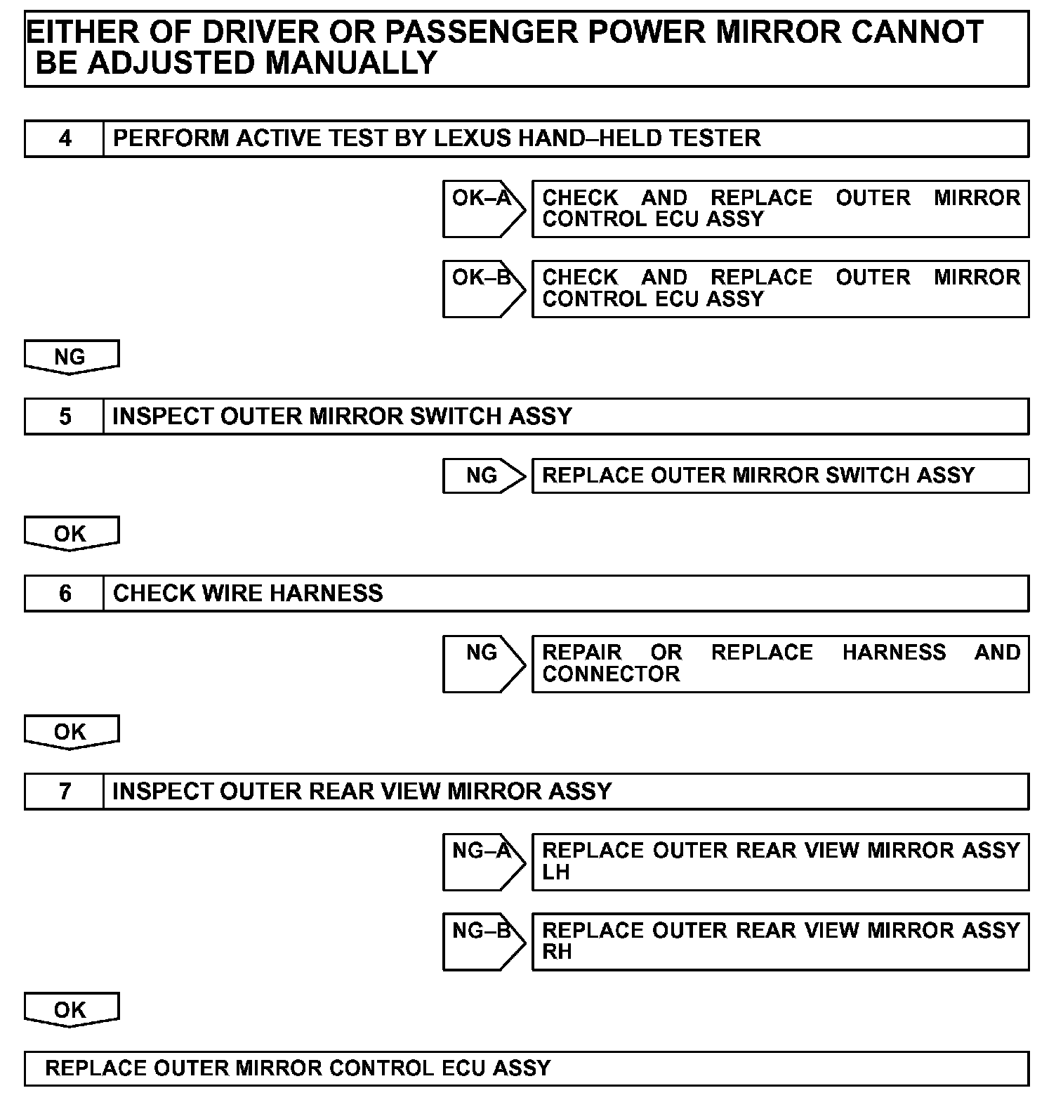 HINT: The power mirror control system is part of the large-scale multiplex communication system. This system features shared communication wiring that reduces the wiring complexity of the communication lines. The first step in any repair is to confirm the proper operation of the communication system. Proceed with troubleshooting after the communication has been verified (See Multiplex Communication System).