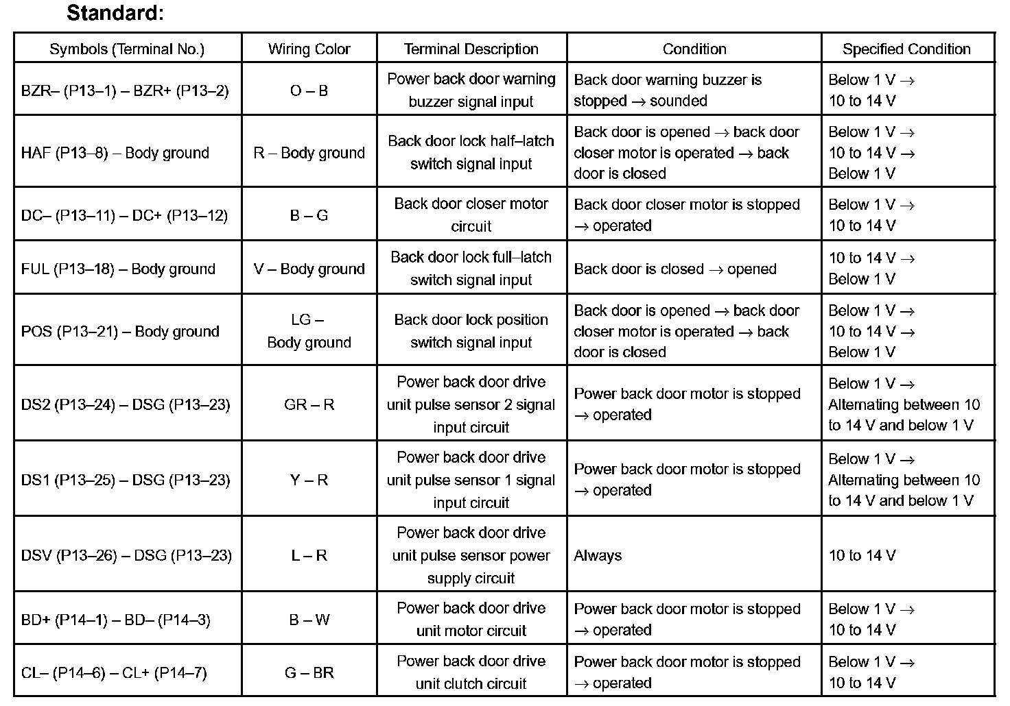 d. Reconnect the P13 and P14 connectors to the back door ECU.