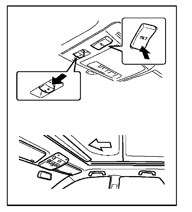 4. Check for proper operation of the "one-touch slide open and close" and "one-touch tilt up and down" functions by pushing the switch briefly to the "SLIDE OPEN" and "TILT UP" positions.