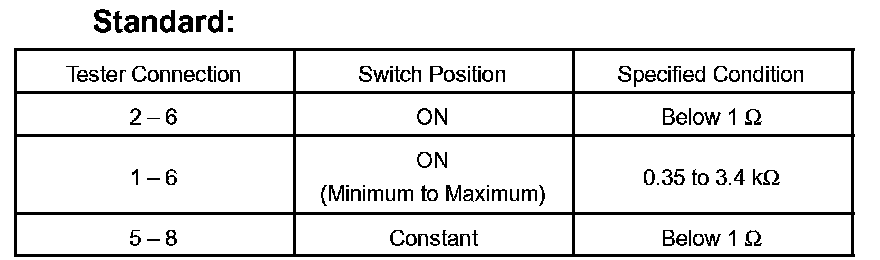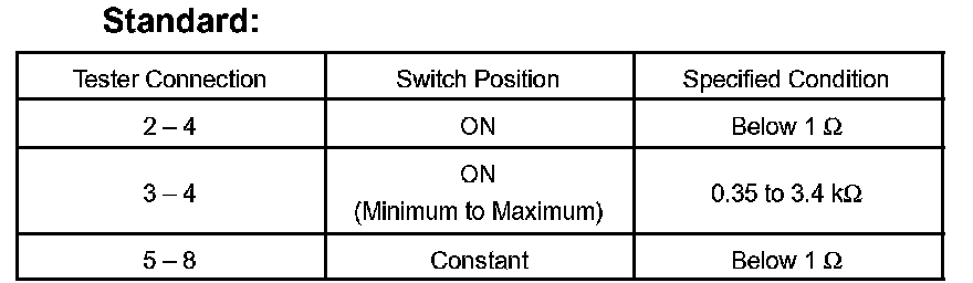 If the result is not as specified, replace the switch.