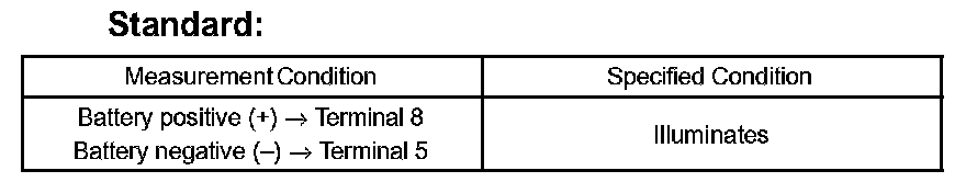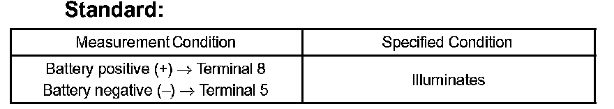 If the result is not as specified, replace the switch or bulb.