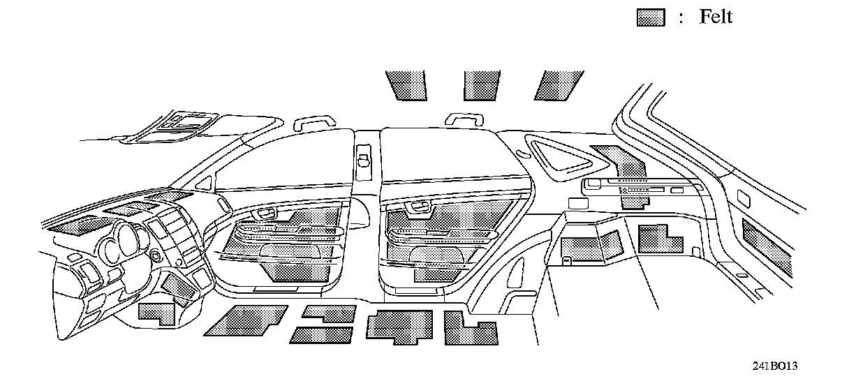 ^ Foamed urethane sponge and foamed seal material are applied onto the roof panel and pillars to reduce wind and road noise.
