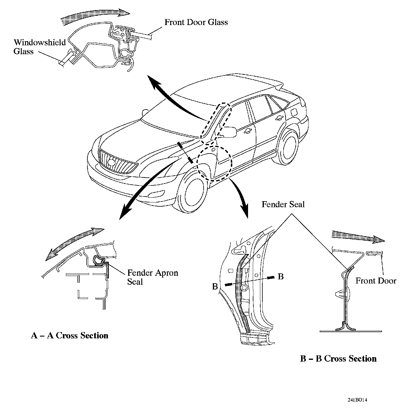 ^ A hood to front fender apron seal and a large fender seal have been adopted to reduce wind noise.