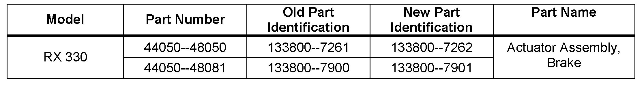 To identify the correct actuator service part, refer to the new part identification mark number in the table.